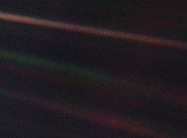 지구는 우주라는 광활한 곳에 있는 너무나 작은 무대이다. 승리와 영광이란 이름 아래, 이 작은 점의 극히 일부를 차지하려고 했던 역사 속의 수많은 정복자들이 보여준 피의 역사를 생각해 보라. 이 작은 점의 한 모서리에 살던 사람들이, 거의 구분할 수 없는 다른 모서리에 살던 사람들에게 보여주었던 잔혹함을 생각해 보라. 서로를 얼마나 자주 오해했는지, 서로를 죽이려고 얼마나 애를 써왔는지, 그 증오는 얼마나 깊었는지 모두 생각해 보라. 이 작은 점을 본다면 우리가 우주의 선택된 곳에 있다고 주장하는 자들을 의심할 수밖에 없다.