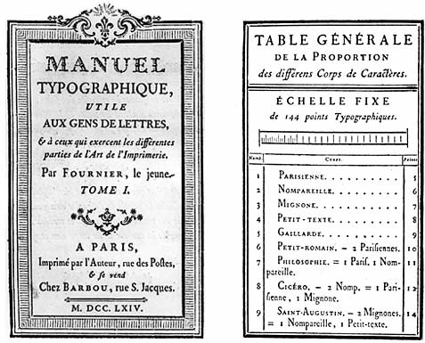 - 프랑스 과학원 기획 하, 피에르 시몽 푸르니에가 발전시킨 실용적인 포인트 체계