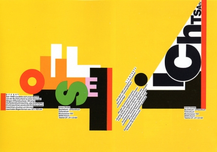 1980년대 스위스에서 지크프리드 오더매트와 그의 동료인 로즈마리 티시는 스위스 타이포그래피적 형식주의에 반하는 디자인을 시작한다. 그들은 극장이나 전시들, 그리고 당시의 관습을 무시하는 인쇄업자들을 위해 홍보물을 디자인했다. 오더매트와 티시의 디자인은 스위스 디자인의 정돈된 규칙을 장난스럽게 무시하면서 제작되었다. 그들은 텍스트와 단을 엇갈리게 배열하고 한쪽에 치우쳐 삐죽삐죽하게 만들었으며 판형을 분할하여 색을 넣은 구획을 사용하거나 활자에 있는 단의 모양을 강조하였다. 굵은 글자꼴들이 색색의 무더기 속에서 서로 겹쳐졌지만 메시지가 불분명해 보이지는 않았다.