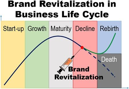 • 하나의 브랜드가 쇠퇴되어가는 시점에 맞는 브랜딩 주사 → 부활하거나 Rebirth or 죽거나 Death