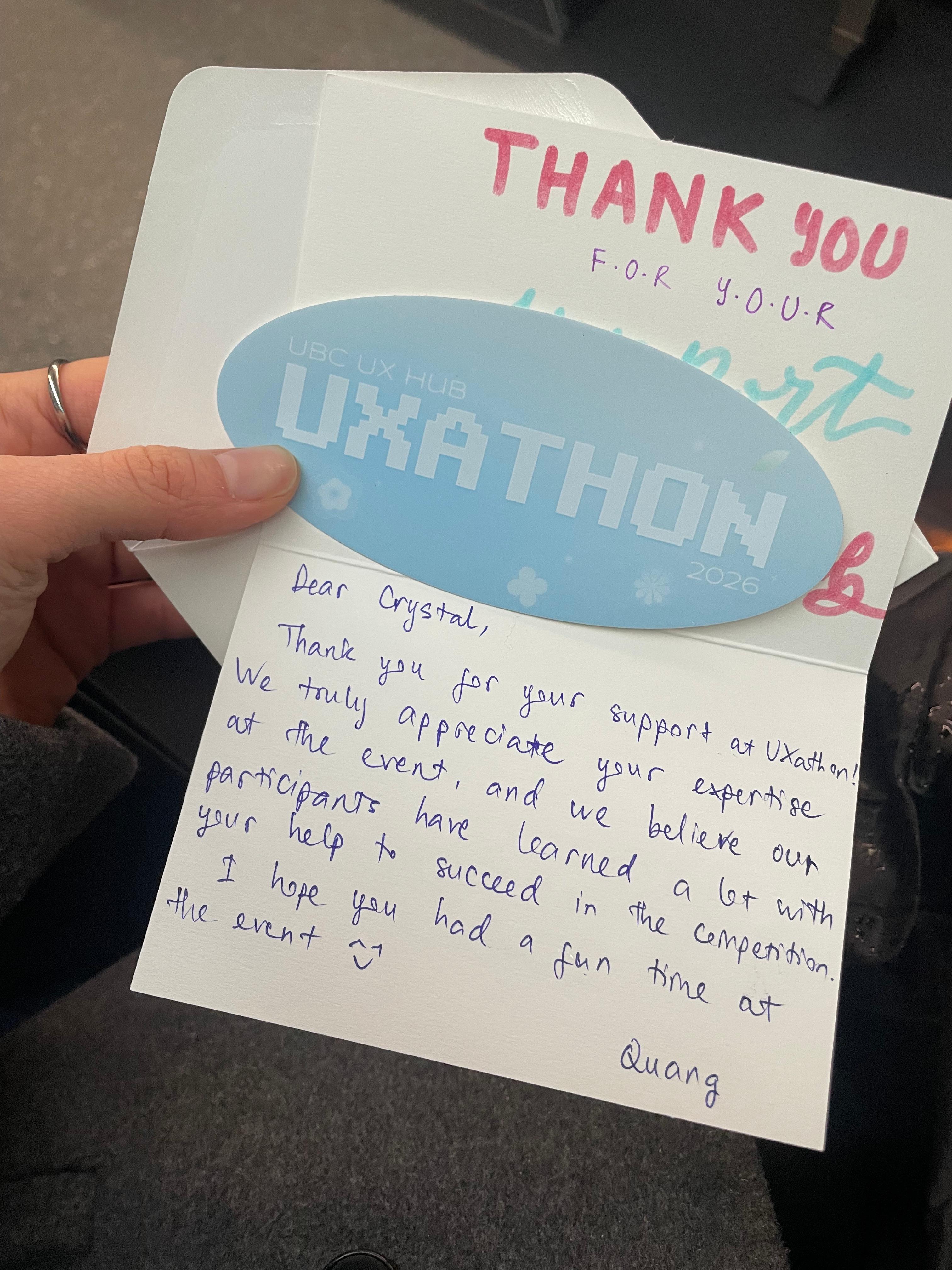 그리고 자리에 초대해 준 UBC UXathon 팀과 Flui Design Jam 팀에도 감사의 마음을 전하고 싶다.
